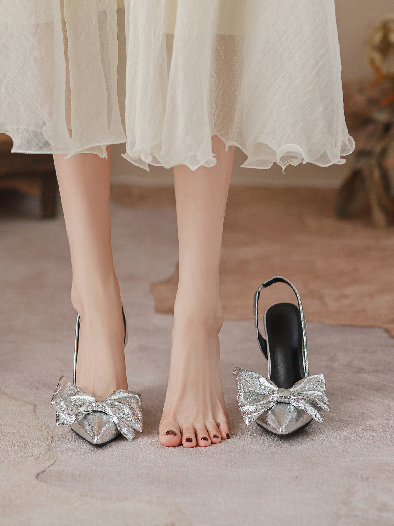 WEIBENA Women's bow high heels are elegant, sexy, pointed, and super high heels with strap sandals, suitable for parties and formal occasions