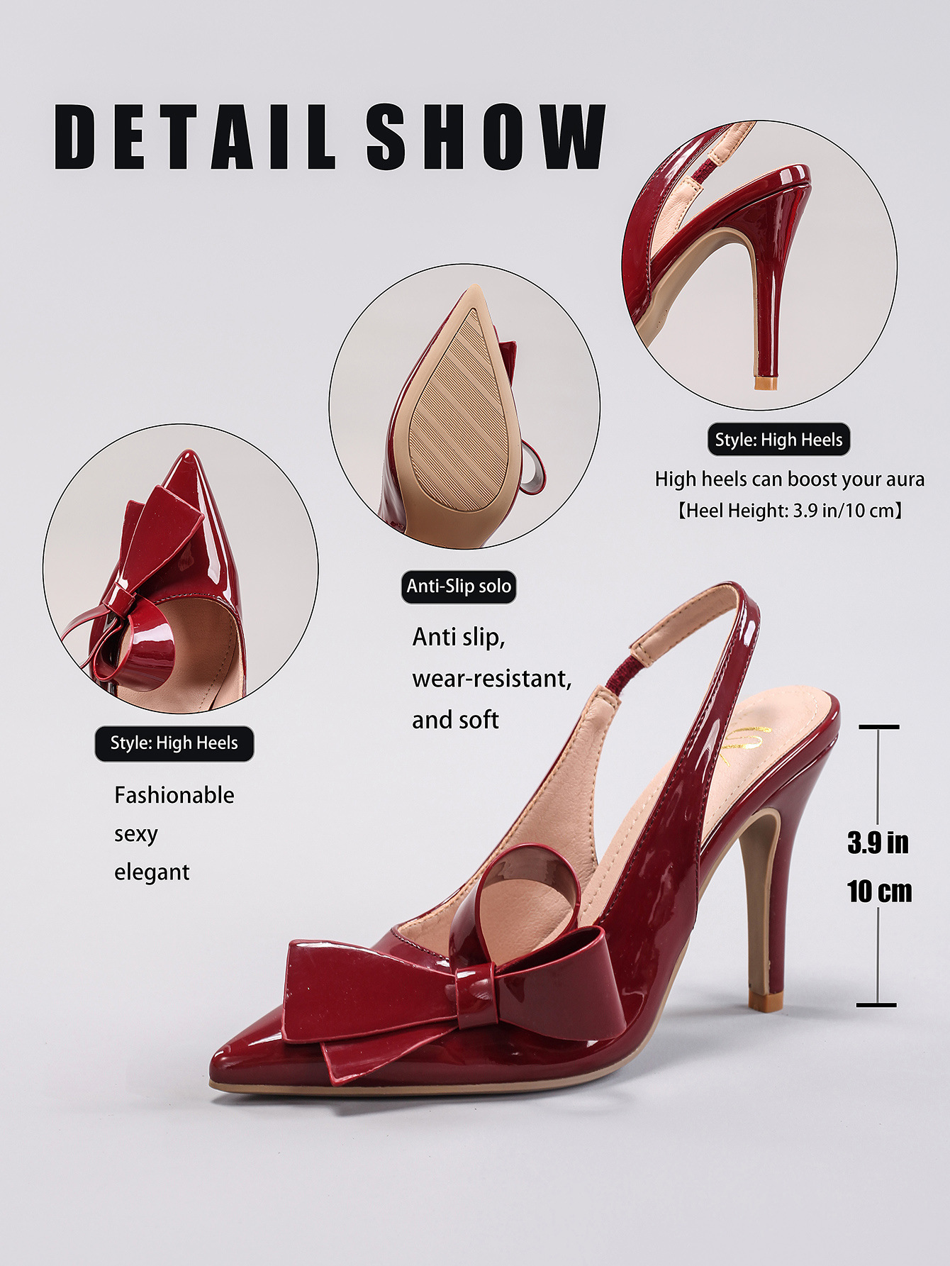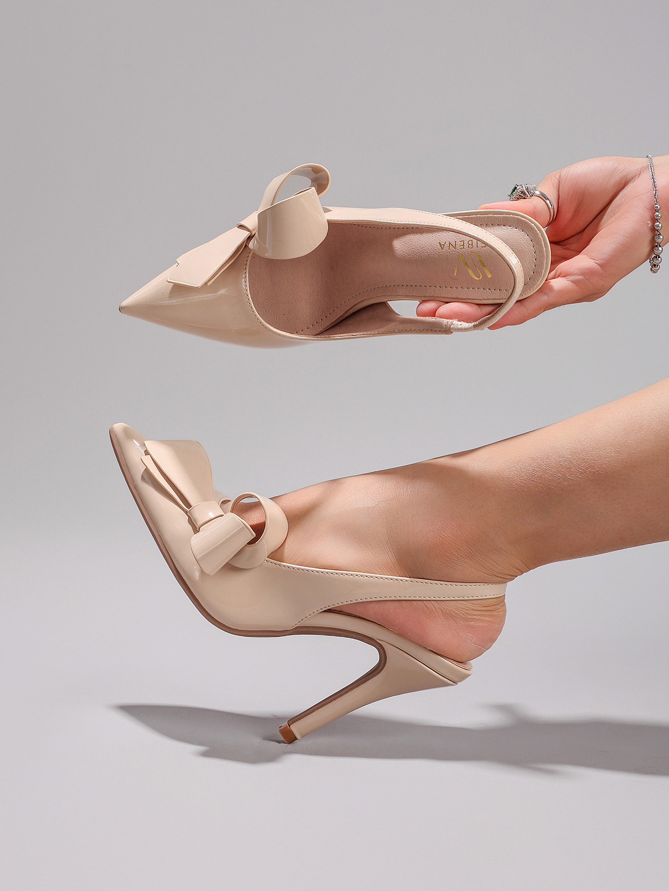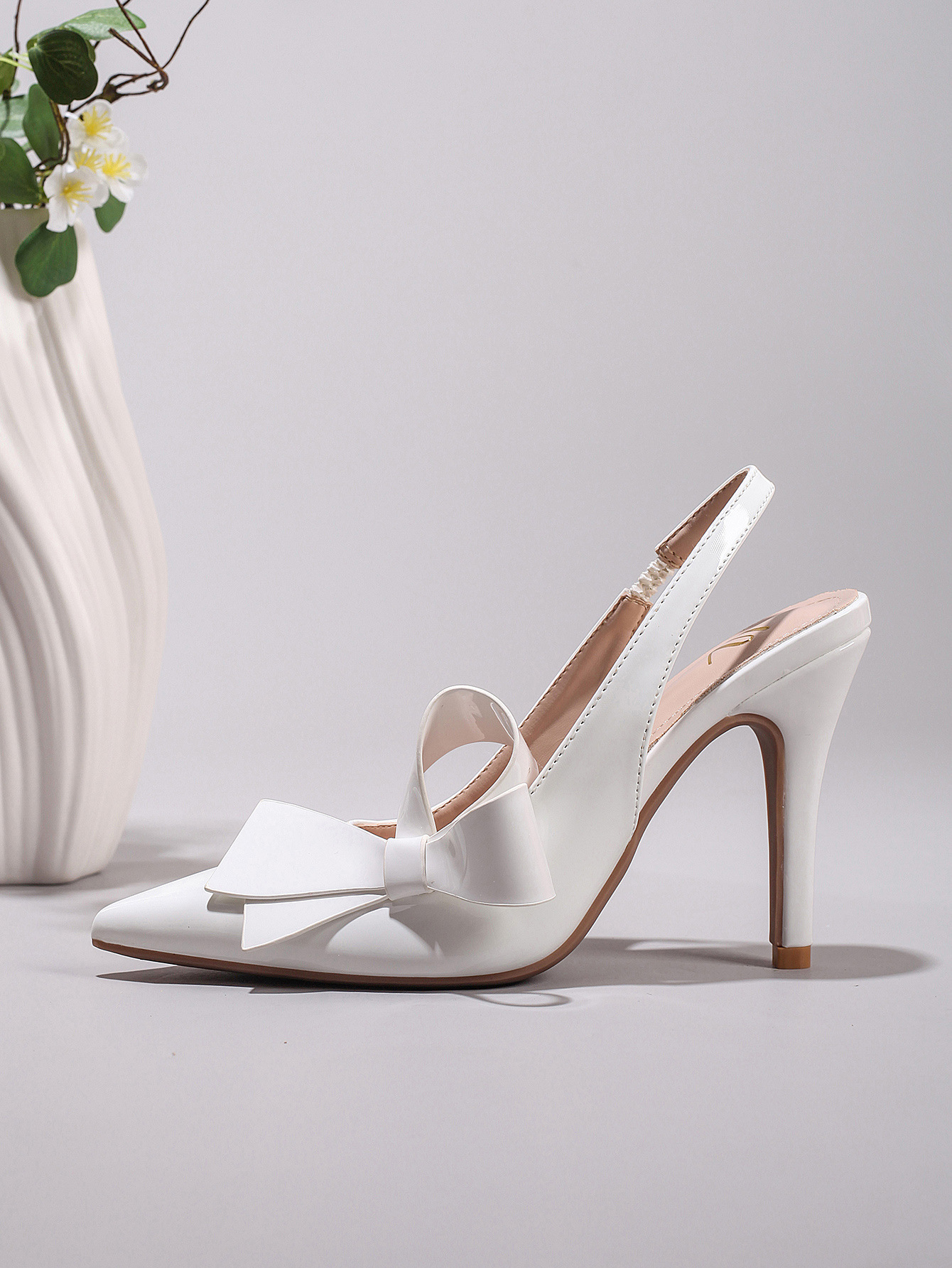 WEIBENA Bow High Heel Sandals Glossy Pu Elegant Sexy Pointed Toe Strap Women's Cross-Border European and American Sandals after Wedding Banquet