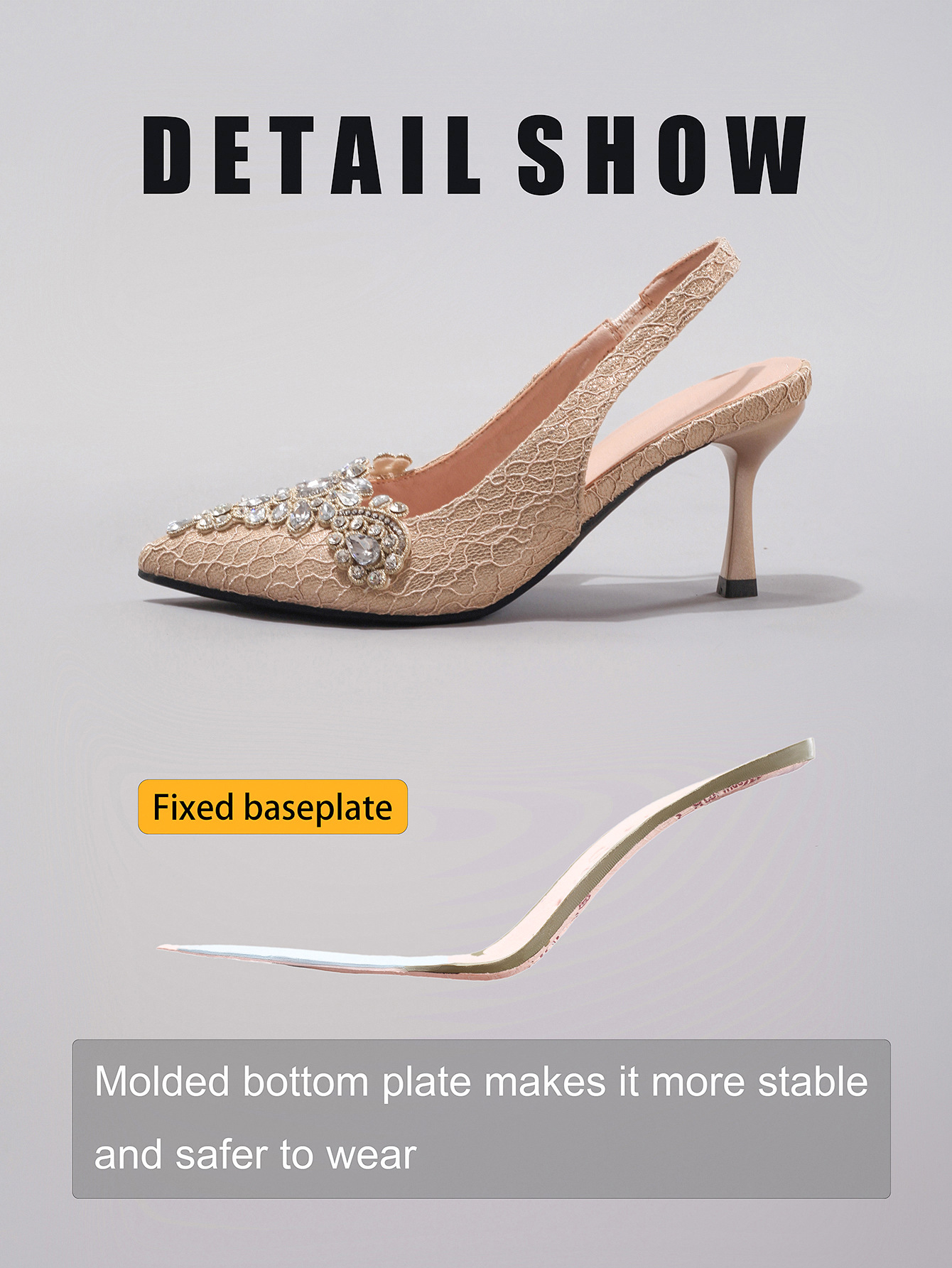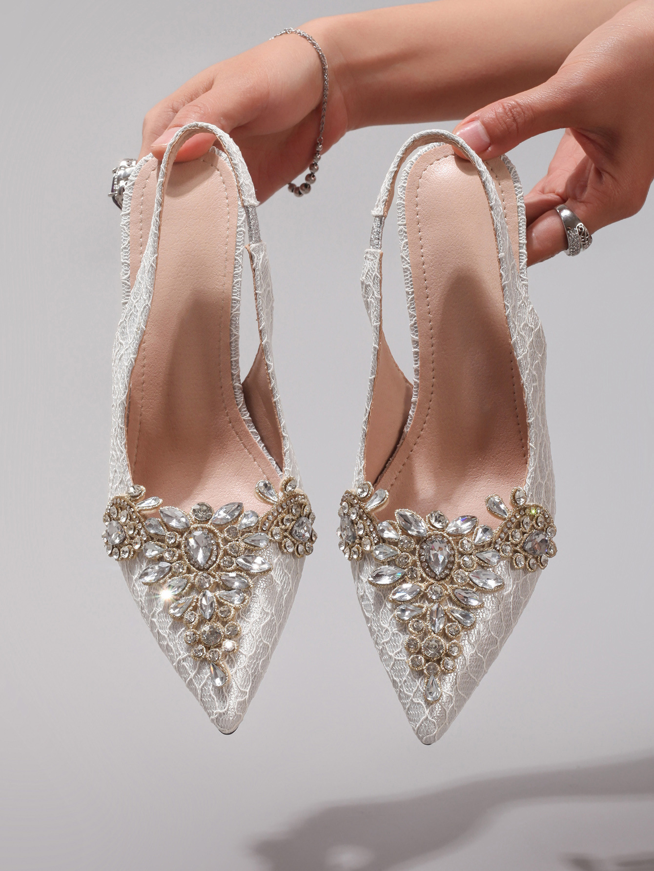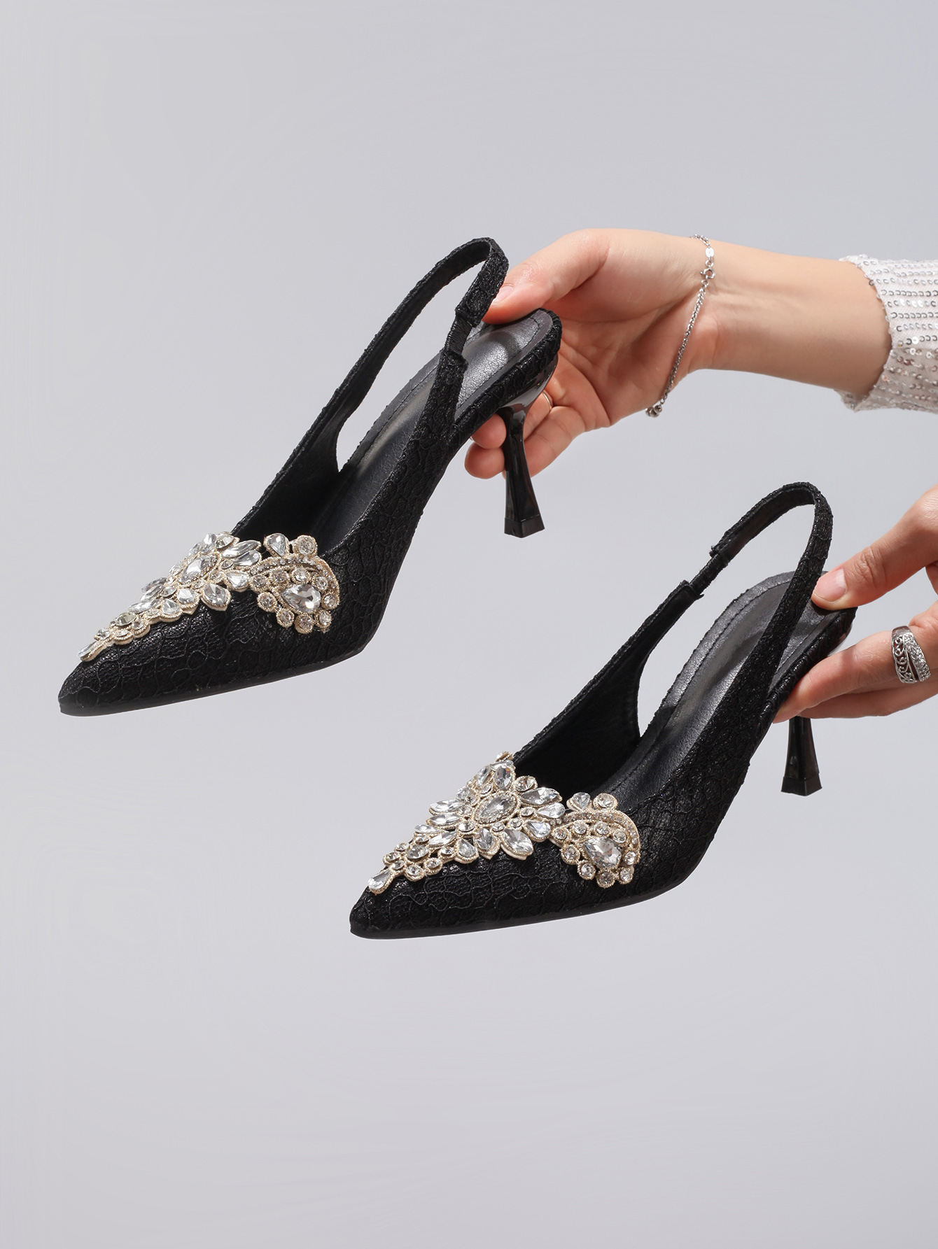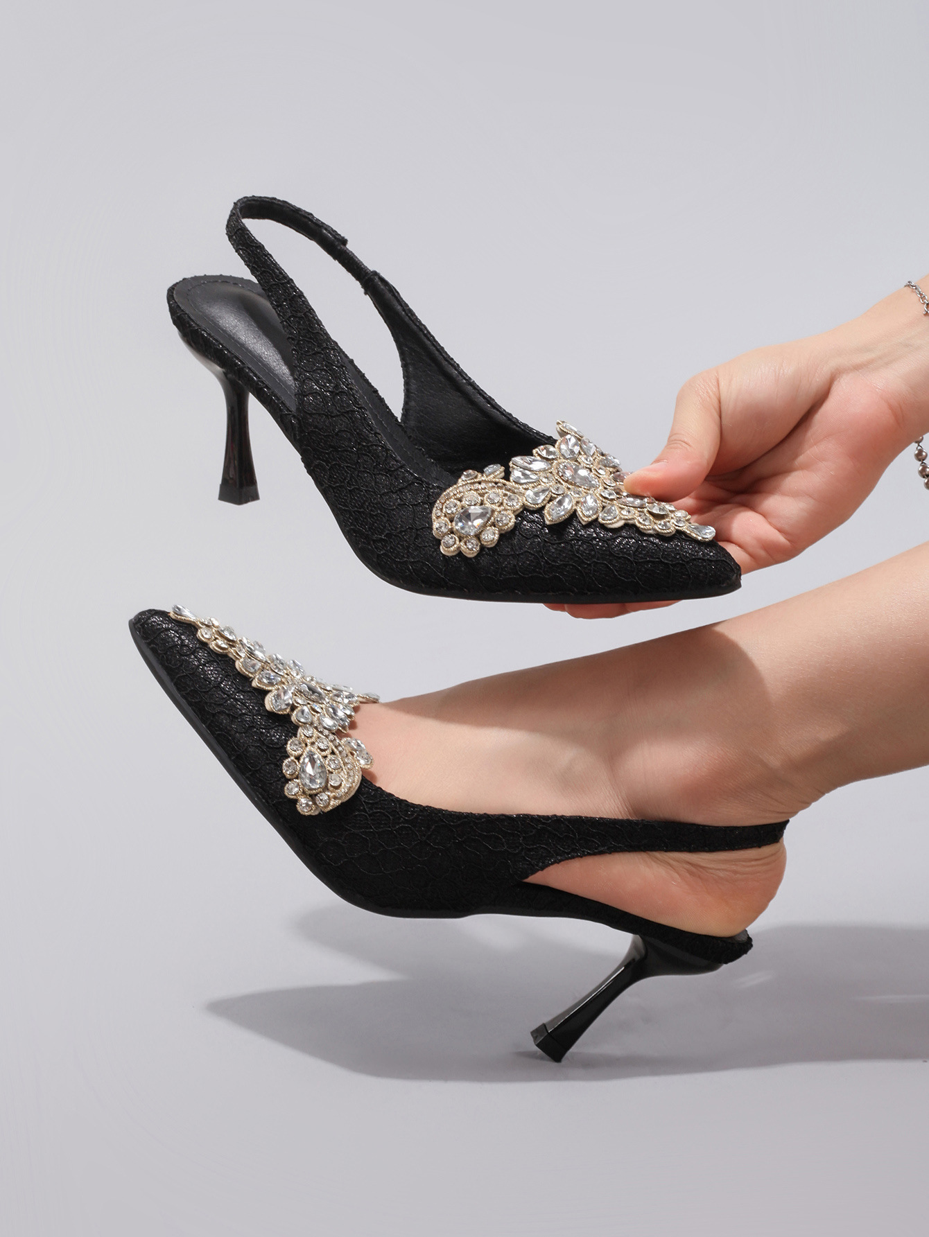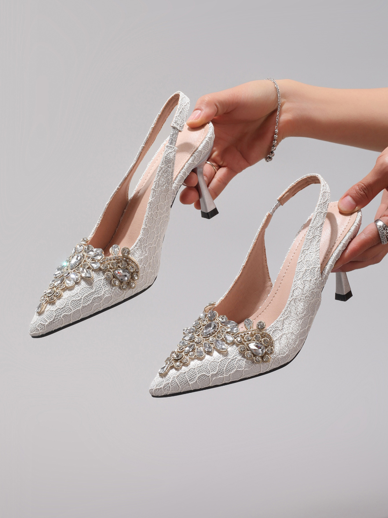 Rhinestone Women's Sexy Pointed Toe Pearl High Heels Fabric Embroidery Glitter Gorgeous Wedding Sandals Cross-border European and American Style