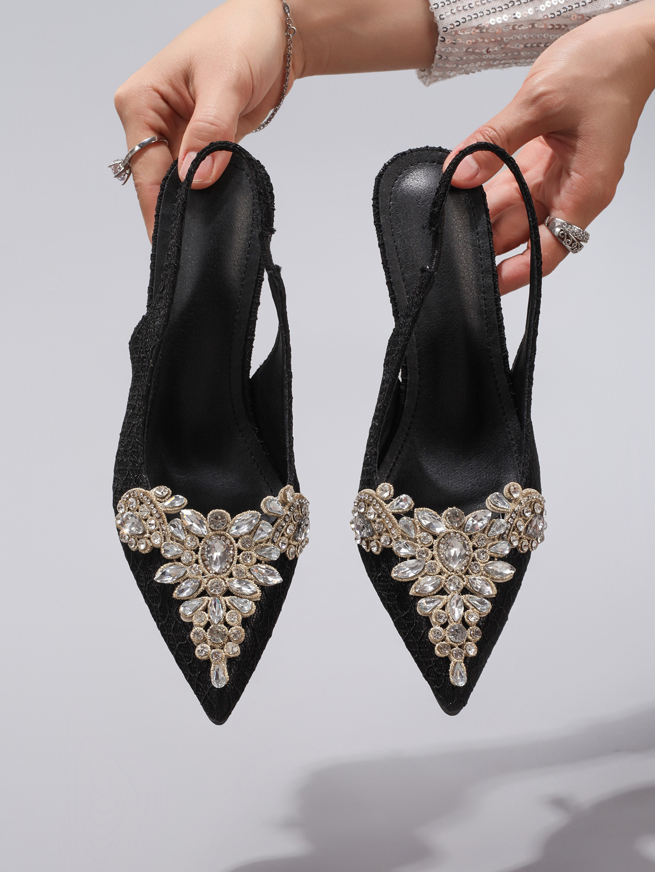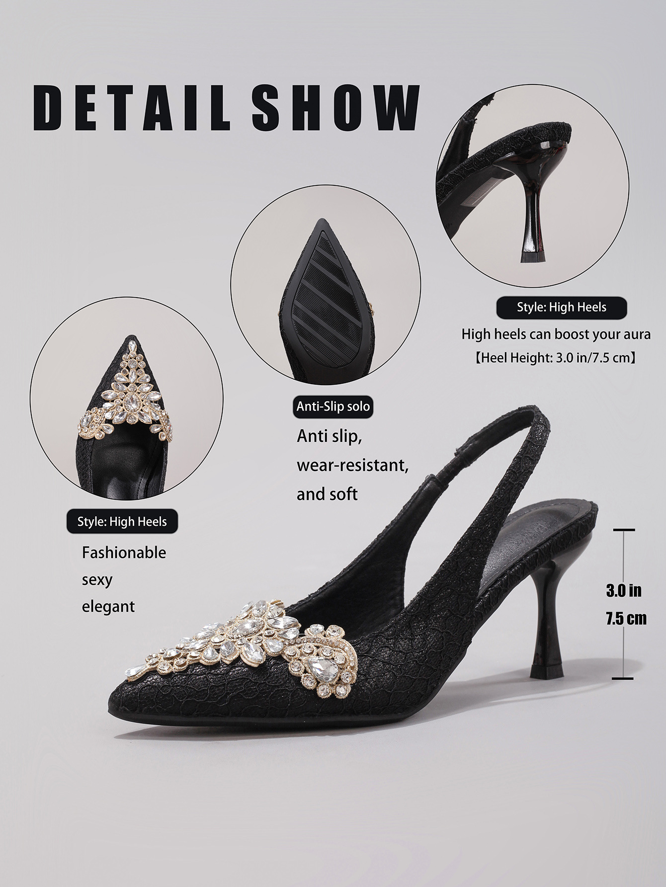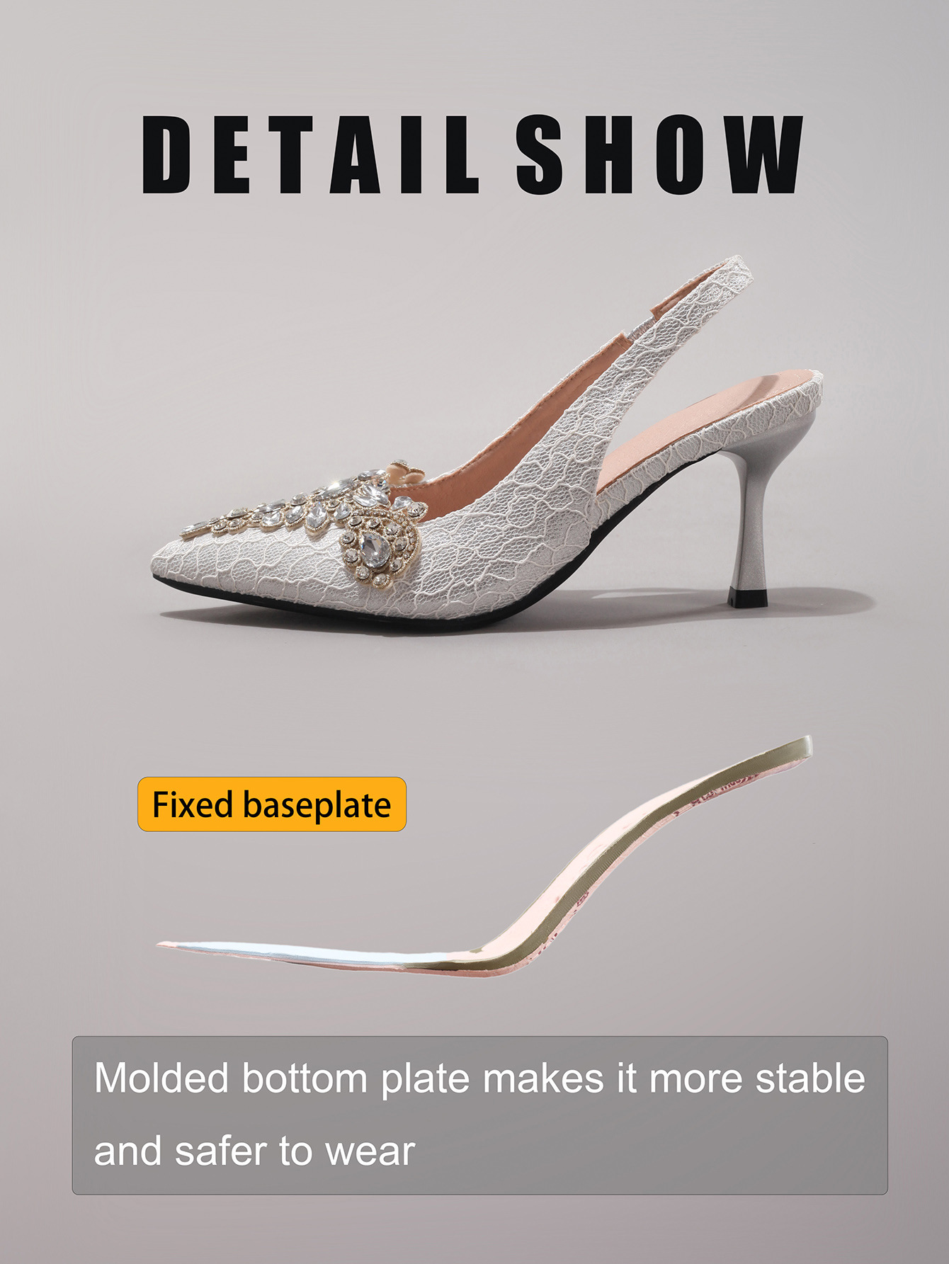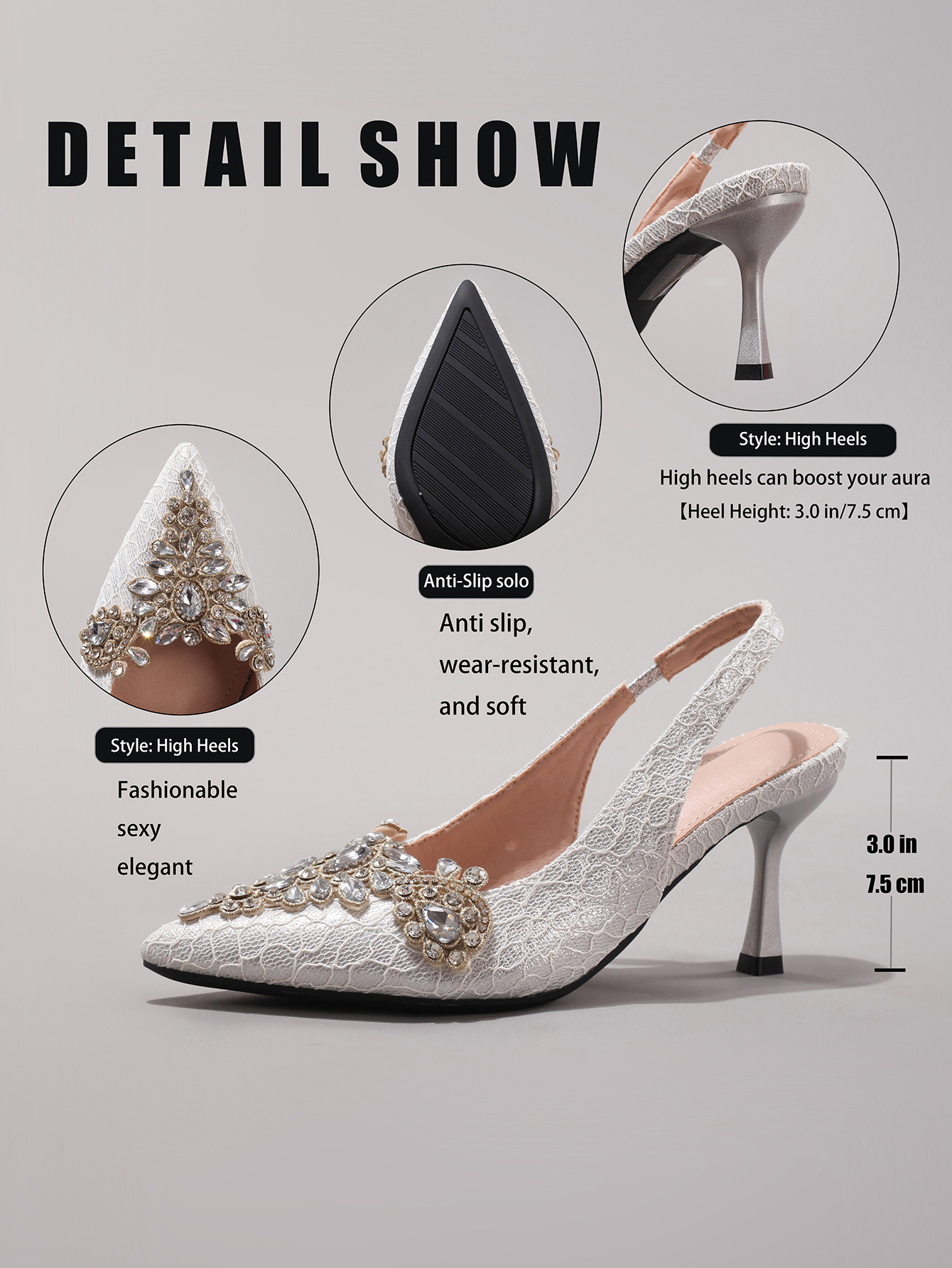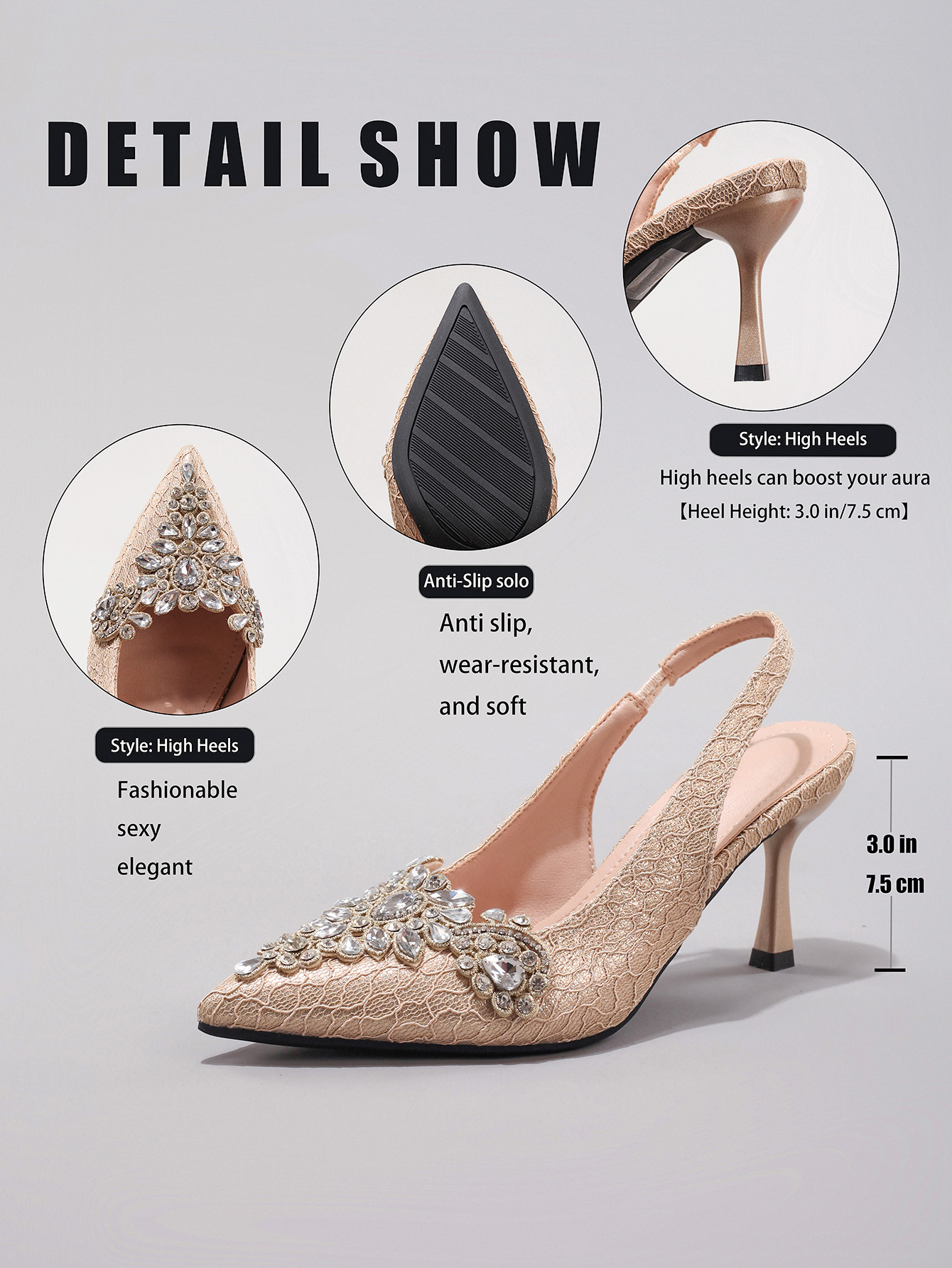Rhinestone Women's Sexy Pointed Toe Pearl High Heels Fabric Embroidery Glitter Gorgeous Wedding Sandals Cross-border European and American Style