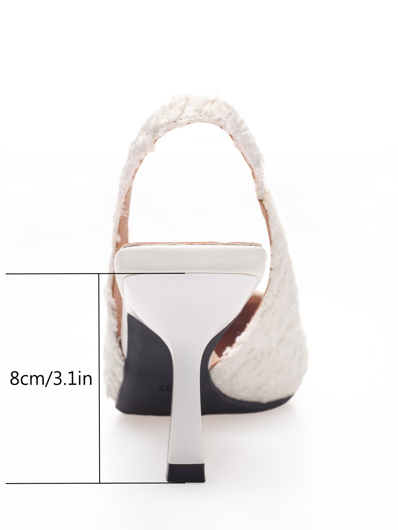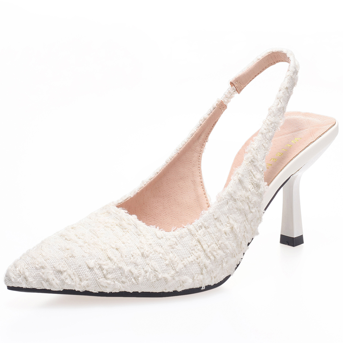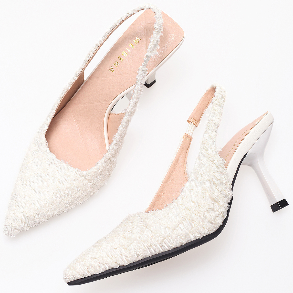 WEIBENA Women's woven logistics Su white high heels, elegant and sexy pointed back strap sandals, suitable for parties and formal occasions