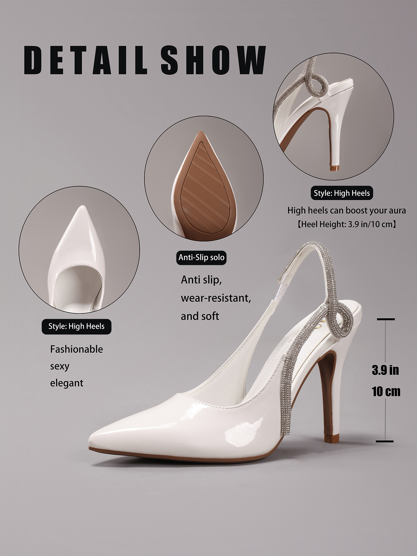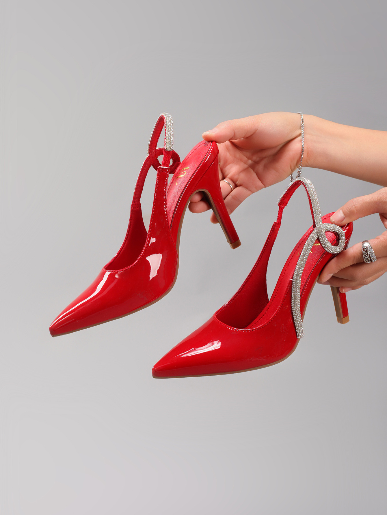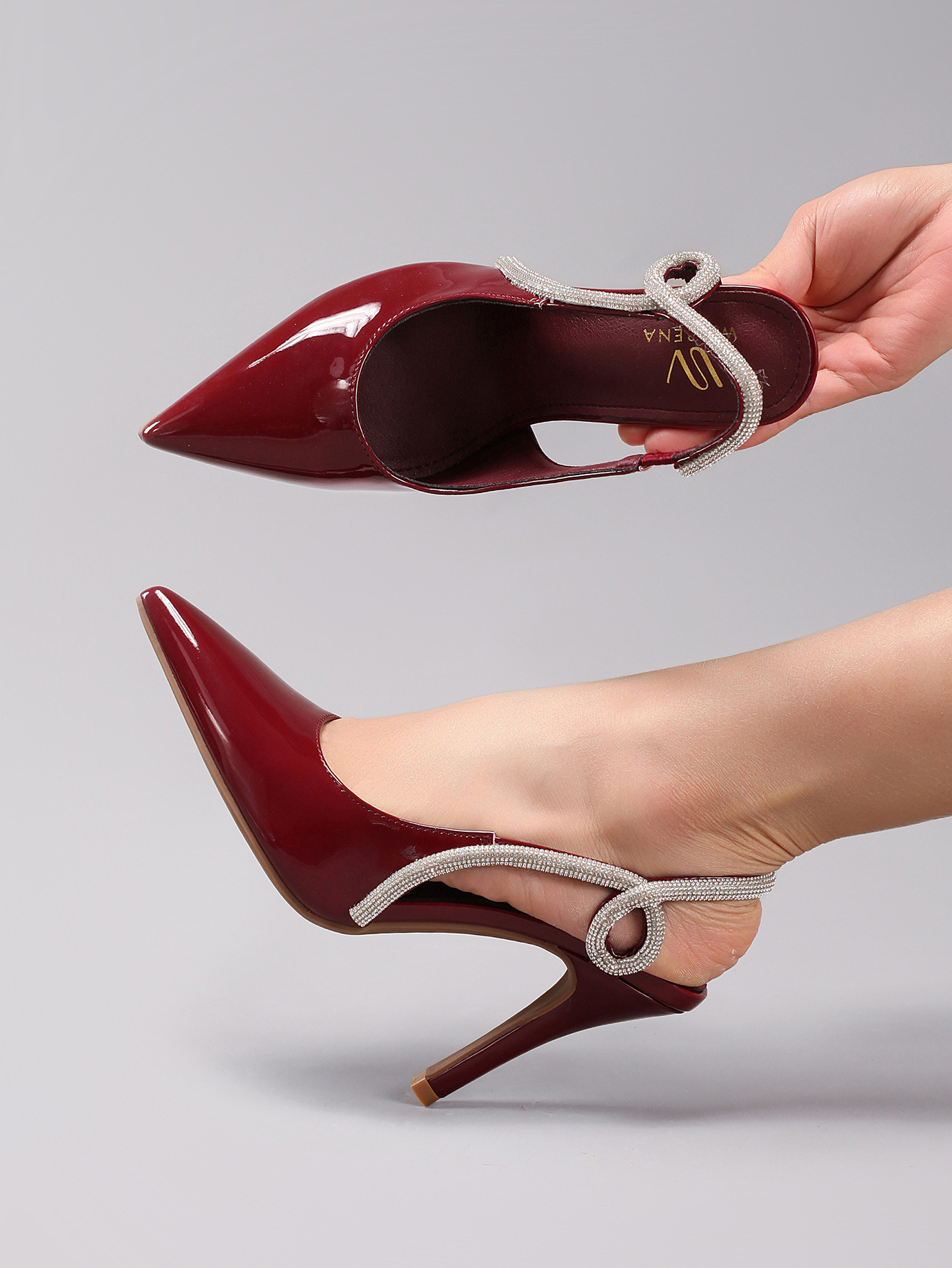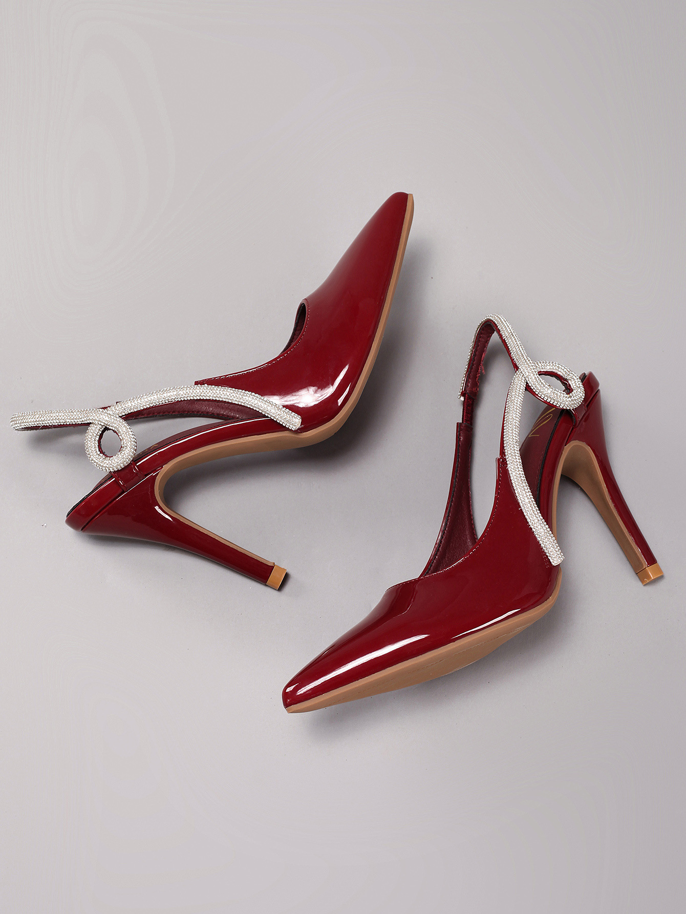 Women's Rhinestone High Heels Sexy Pointed Toe Gorgeous Party Prom Wedding Back Strap Open Heel Sandals Cross-Border Supply