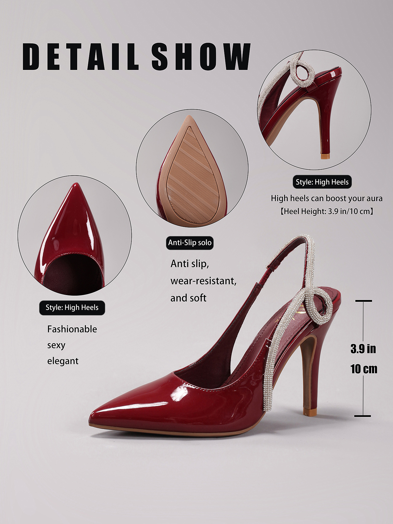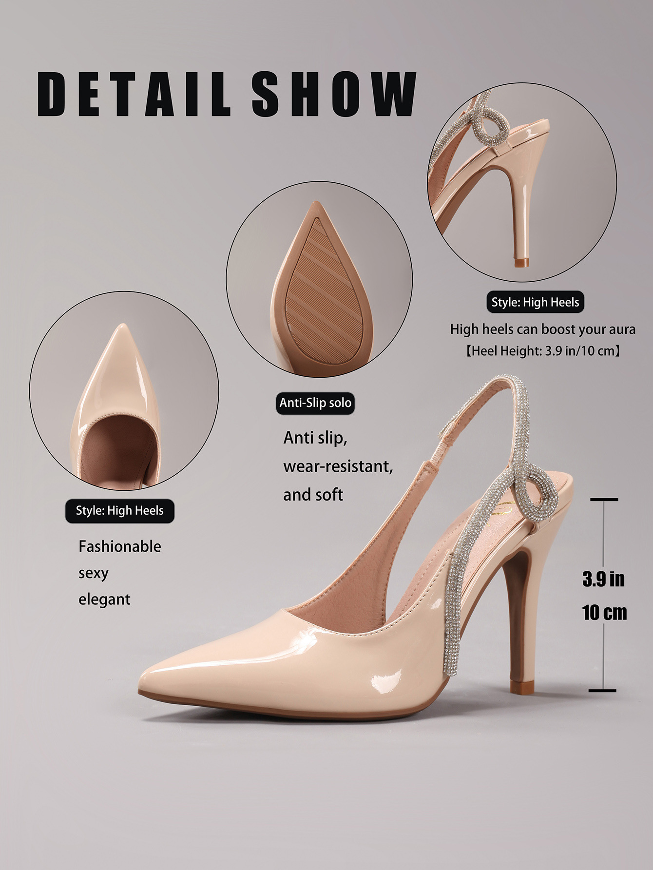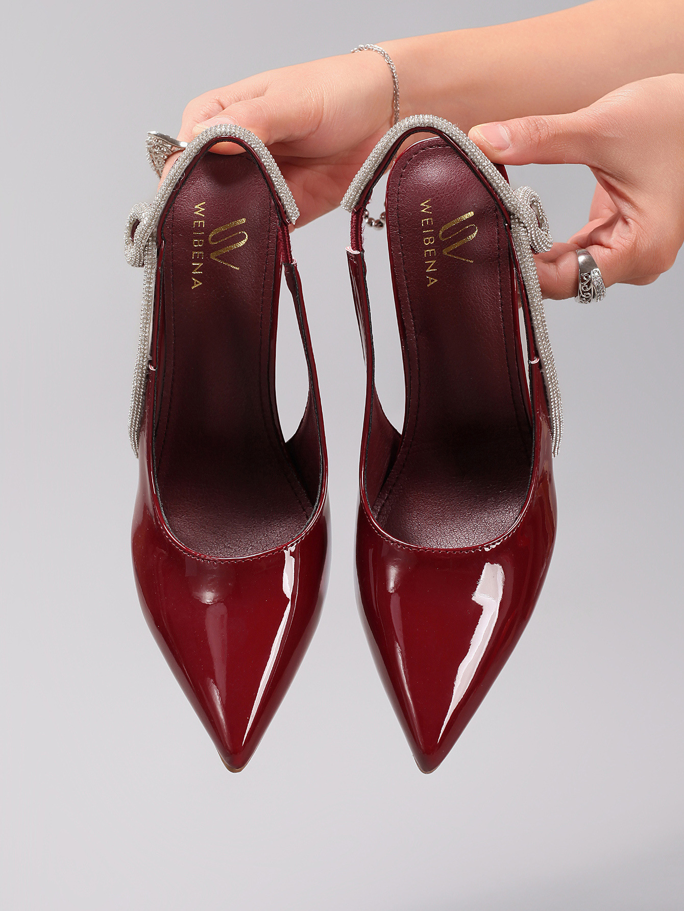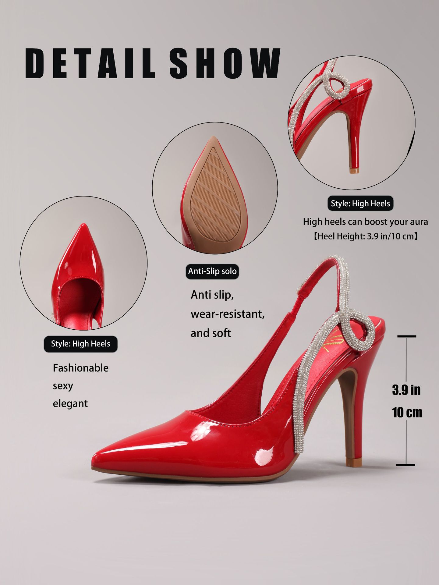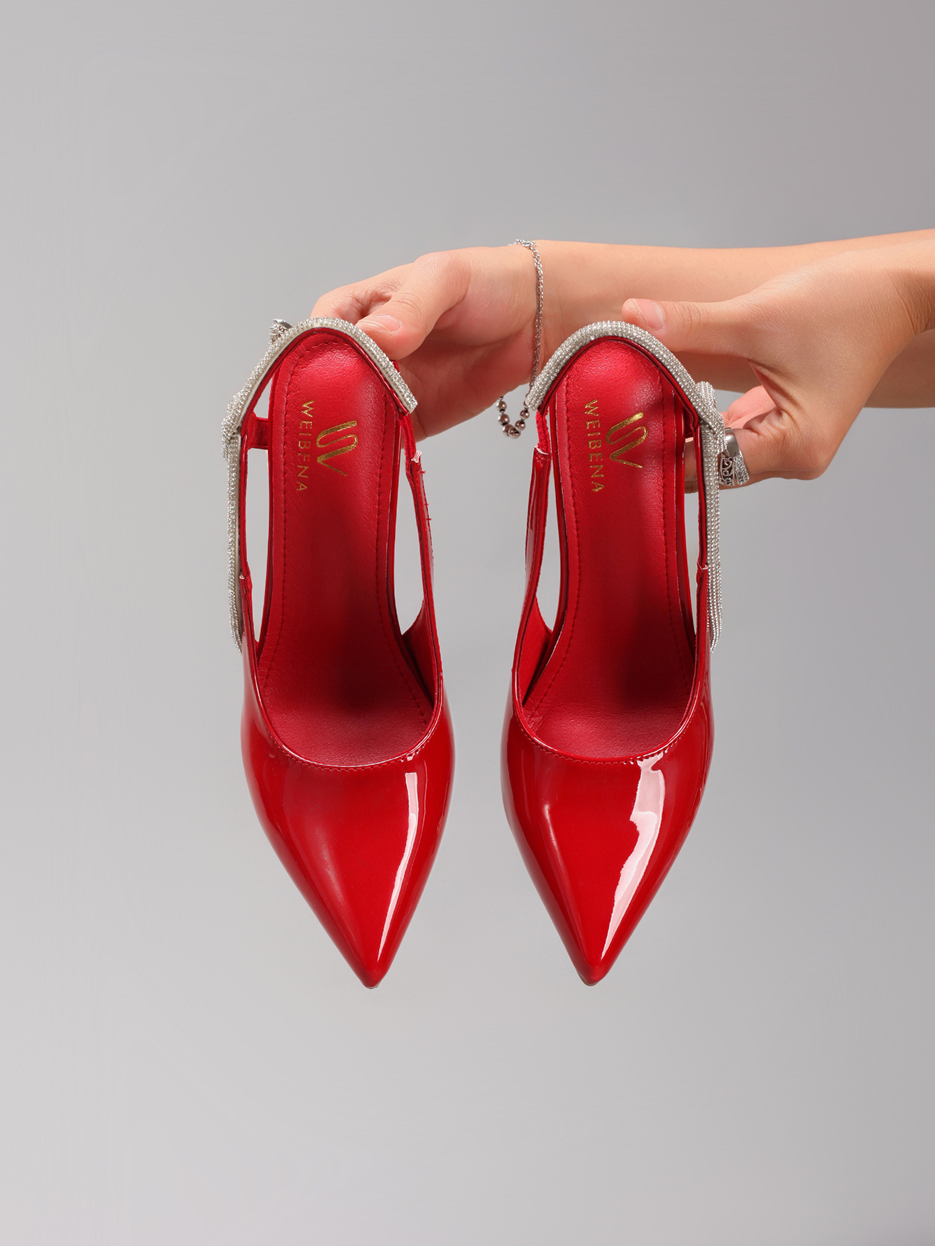 Women's Rhinestone High Heels Sexy Pointed Toe Gorgeous Party Prom Wedding Back Strap Open Heel Sandals Cross-Border Supply